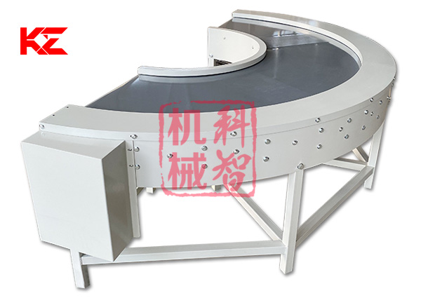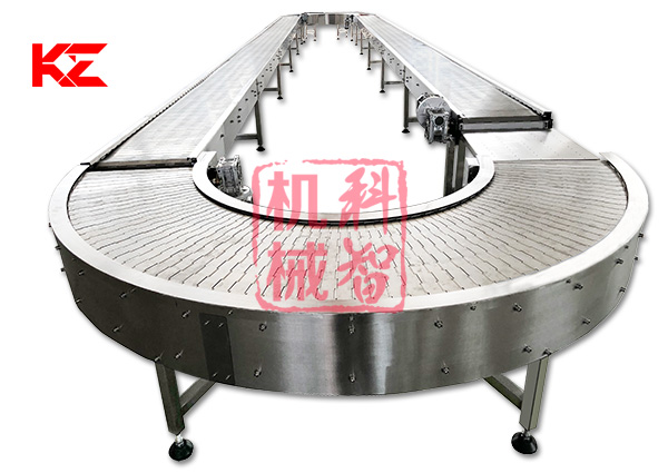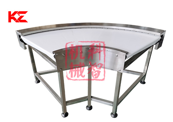 轉(zhuǎn)彎輸送機采用的形式有:網(wǎng)帶轉(zhuǎn)彎輸送機、鏈板式轉(zhuǎn)彎輸送機、皮帶式轉(zhuǎn)彎輸送機、鏈桿式轉(zhuǎn)彎輸送機、塑料模塊式轉(zhuǎn)彎輸送機等。轉(zhuǎn)彎角度有45度、90度、180度等等。轉(zhuǎn)彎食品輸送機的寬度和轉(zhuǎn)彎半徑均可根據(jù)需求定做。