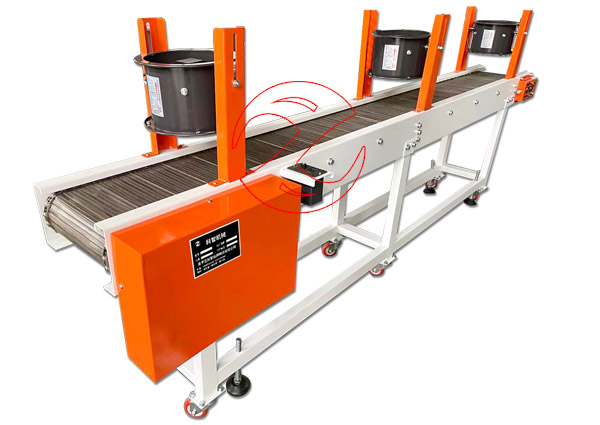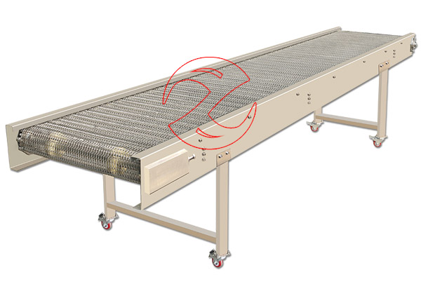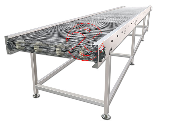 網(wǎng)帶輸送機以金屬絲編織輸送帶為載體,在一定的線路上連續(xù)輸送物料的機械,常輸送塊狀、顆粒狀與整件物料的水平傾斜轉(zhuǎn)彎方向的輸送,網(wǎng)帶食品輸送機具有網(wǎng)孔,且網(wǎng)孔的大小可按需要選擇,食品輸送機網(wǎng)帶的長度可任意選定。網(wǎng)帶輸送機可按需加工成提升輸送機、轉(zhuǎn)彎輸送機、環(huán)形輸送機等網(wǎng)帶輸送線。